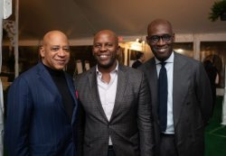 Priest (left) at the 50th Anniversary Gala alongside Brian Williams (center, 2021-22 RWJF Health Policy Fellow), and Anaeze Offodile (right, 2019-21 NAM Gilbert S. Omenn Fellow)
