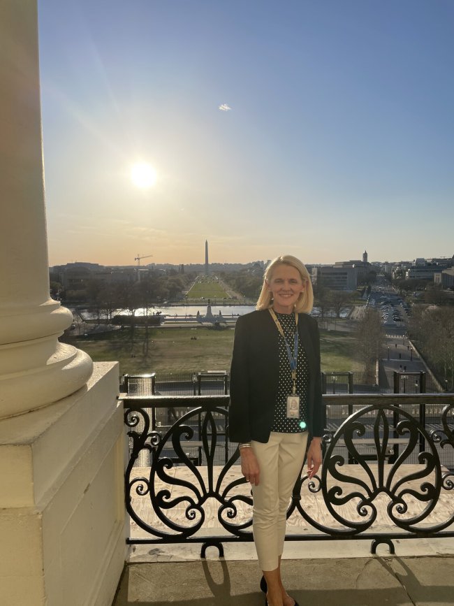 Baker stands on a balcony overlooking the U.S. Capitol grounds. Photo courtesy Brenda Baker