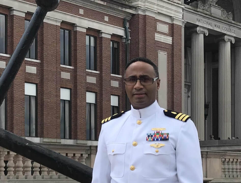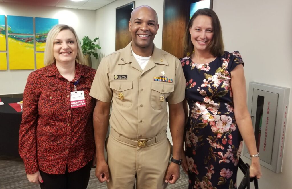 During her fellowship year, Michelle Dennison (right) worked in the office of former Surgeon General Jerome Adams (center). Photo: Michelle Dennison By Marisa Coulton Dr. Michelle…